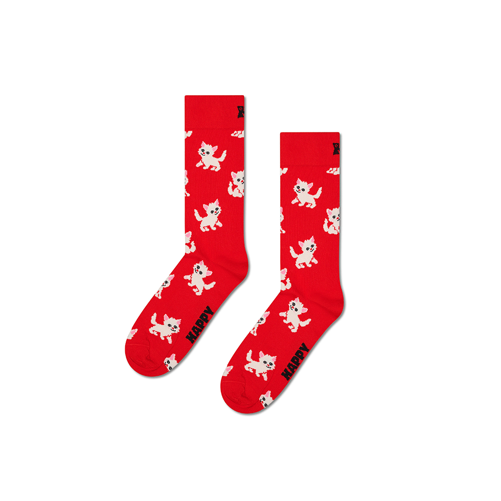 Κόκκινες κάλτσες με σχέδια γάτας
