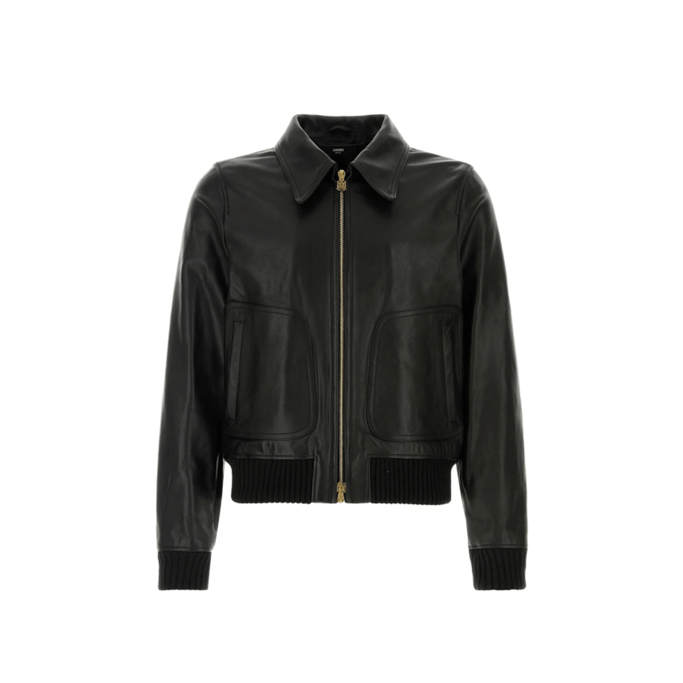Μαύρο δερμάτινο jacket με φερμουάρ, Amiri