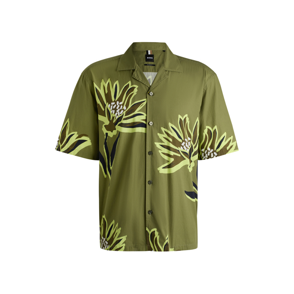 Χακί κοντομάνικο πουκάμισο με floral μοτίβο, BOSS