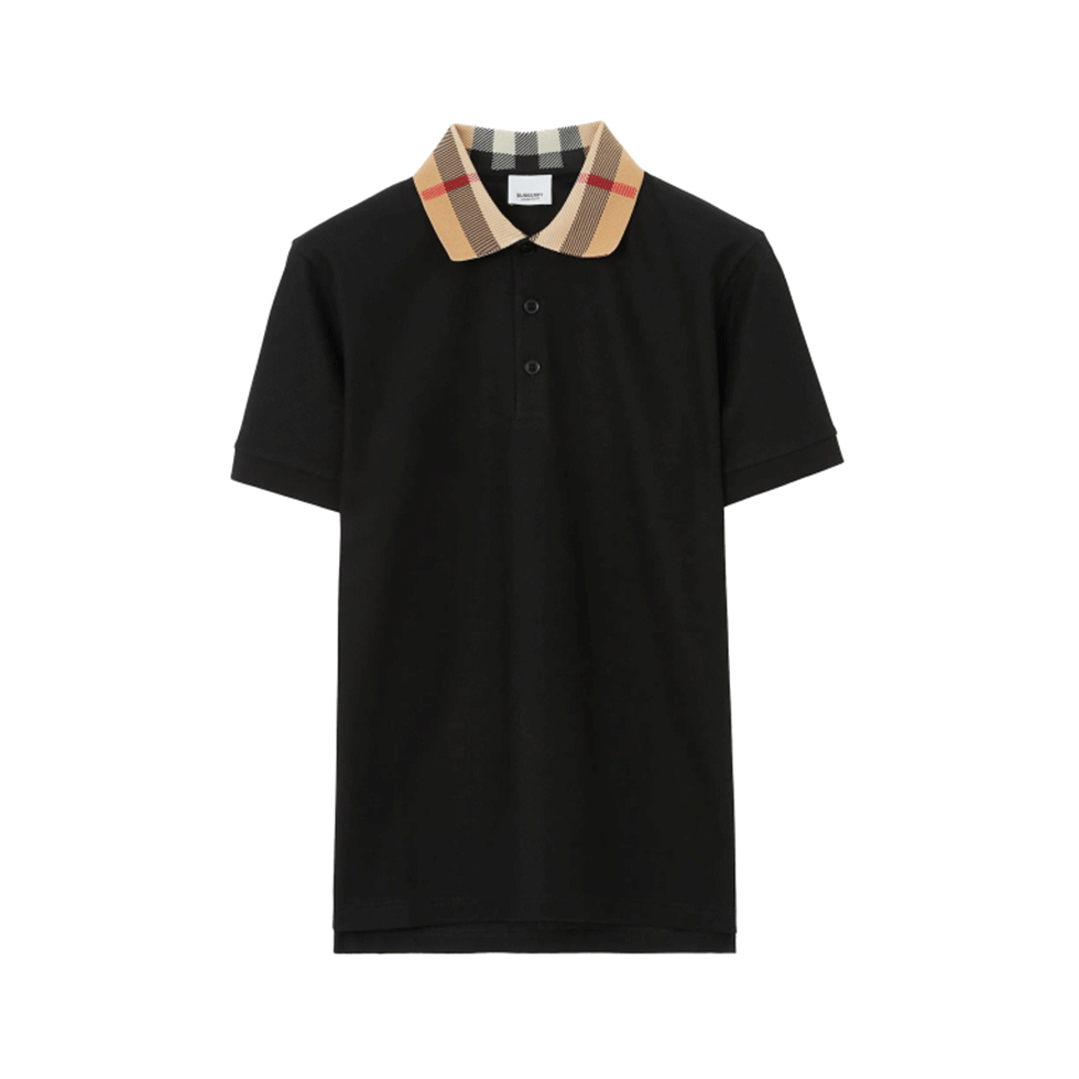 Μαύρο polo t-shirt με καρώ γιακά, Burberry