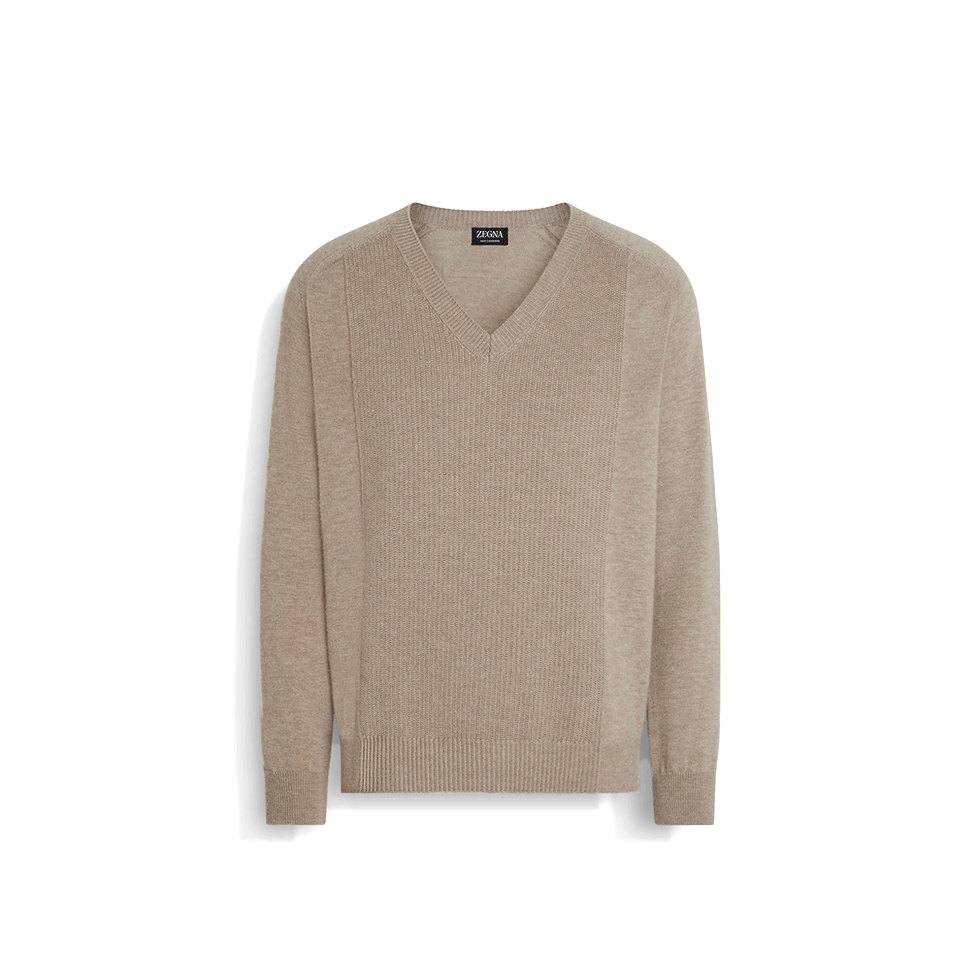 Μπεζ V-neck μάλλινο πουλόβερ