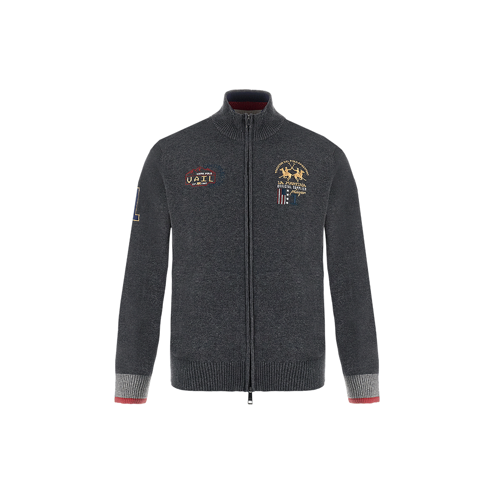 Γκρι ανθρακί πλεκτή ζακέτα με φερμουάρ