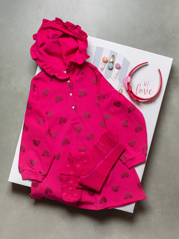 Φυσικά, για την πριγκίπισσα της οικογένειας σας, υπάρχει ένα ρούχο, που από την πρώτη κιόλας στιγμή θα γίνει το αγαπημένο της. Ο λόγος για το φούξια φόρεμα με print από καρδούλες και ασορτί καλσόν για τις πιο άνετες και κομψές της εμφανίσεις. Θα το βρείτε στο κατάστημα sugar ‘n spice. Και για να δώσετε έναν πιο ροκ «αέρα» στις εμφανίσεις των παιδιών σας, πείτε «ναι» στο μαύρο jacket με δερμάτινες λεπτομέρειες στα μανίκια από το κατάστημα Gap kids.