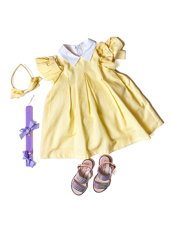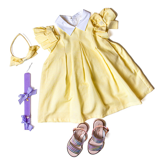 Πρώτη στάση για τη μικρή σας βαφτιστήρα, θα είναι στο κατάστημα Frattina, στο οποίο -μέσα από μία μεγάλη ποικιλία ρούχων και αξεσουάρ- θα βρείτε το πιο ονειρεμένο κίτρινο, βαμβακερό φόρεμα με γιακά και ένα μοναδικό κόψιμο στους ώμους. Σίγουρα, είναι η καλύτερη επιλογή για τις γιορτινές ημέρες που έρχονται.