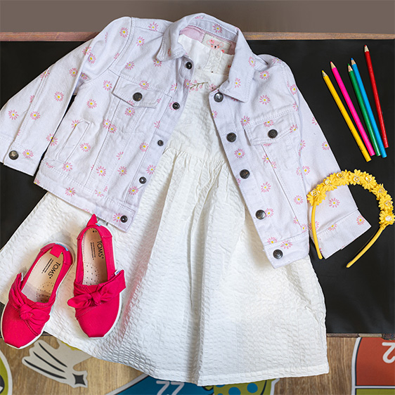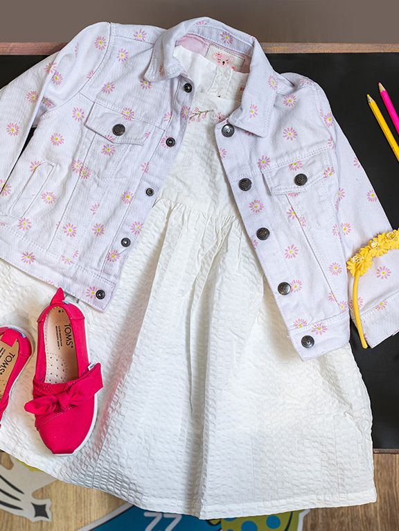 Αμέσως μετά κατευθυνθείτε στον πρώτο όροφο και συγκεκριμένα στο κατάστημα DPAM (Du Pareil au Même). Εκεί, το λευκό φόρεμα, με κέντημα μπροστά και τούλι στα μανίκια από ταφτά, είναι ό,τι για να κάνει τη μικρή σας να σας δώσει μία σφιχτή αγκαλιά.