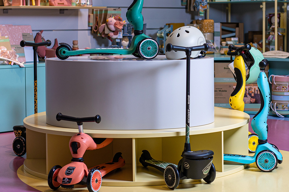 Περπατώντας, προς την επέκταση του Golden Hall θα βρείτε το Cozy Kids, όπου το ποδήλατο ισορροπίας θα σας τραβήξει αμέσως την προσοχή. Πρόκειται για ένα μεταλλικό ποδήλατο ισορροπίας, με σέλα που αυξομειώνεται, που αποτελεί ιδανικό δώρο για κάθε νονά ή νονό.