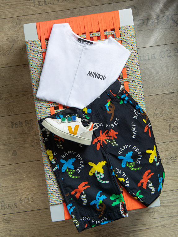 Μήπως τα έντονα prints «υπακούουν» στις στιλιστικές επιλογές του μικρού σας; Τότε δεν έχετε παρά να επιλέξετε για την ντουλάπα του, ρούχα που θα κάνουν τη διαφορά, όπως το κρεμ κοντομάνικο μπλουζάκι με έντονα σχέδια από το DPAM και την πιο fun βερμούδα Stella McCartney από το Milkshakes and Dreams.