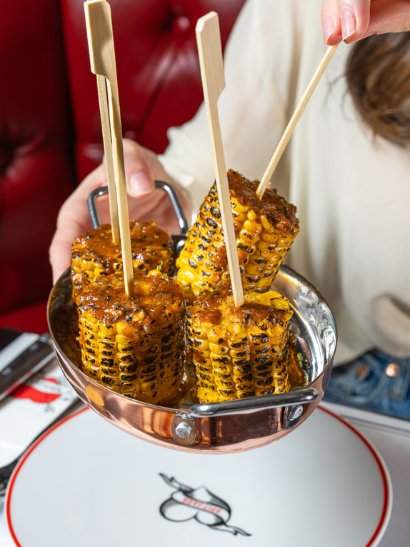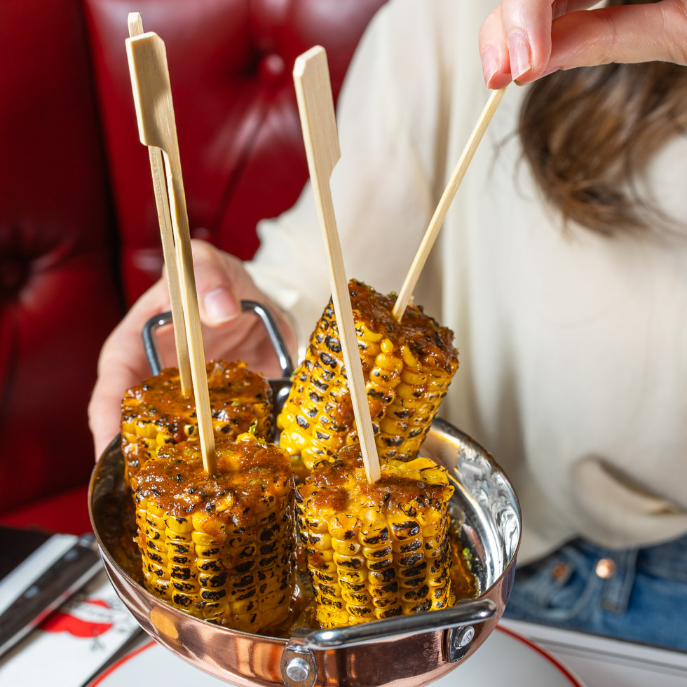 Στα ορεκτικά, ξεχώρισαν τα creamy mushrooms – μανιτάρια μαγειρεμένα με κατσικίσιο τυρί, lime και φουντούκι. Η κρεμώδης υφή και η ελαφρώς όξινη γεύση από το lime «απογείωναν» το πιάτο, ενώ το φουντούκι πρόσφερε μια ενδιαφέρουσα, τραγανή αντίθεση. Δίπλα τους, το Corn on the Cob ήταν μια πιο «απλοϊκή» αλλά άκρως γευστική επιλογή: καλαμπόκι ψημένο με βούτυρο, μέλι και togarashi, ένα ιαπωνικό μείγμα μπαχαρικών που πρόσθεσε spicy ένταση.