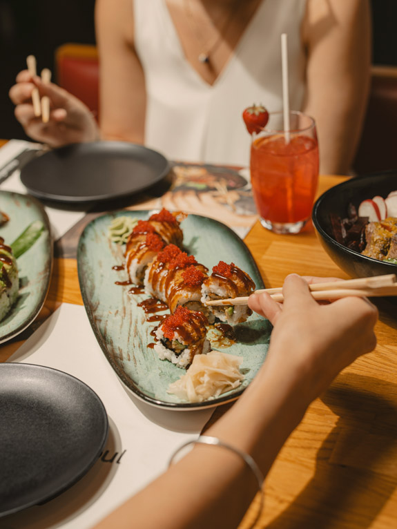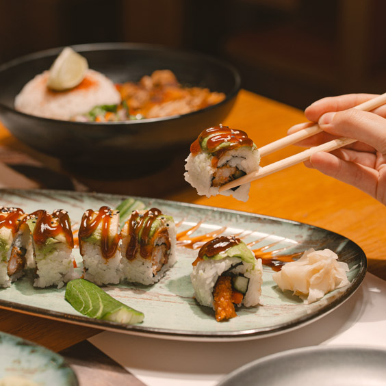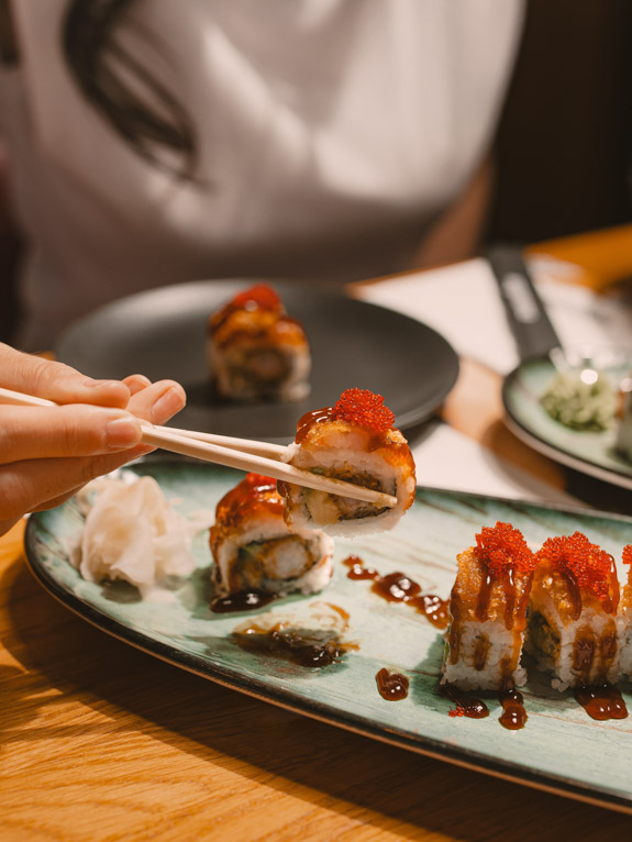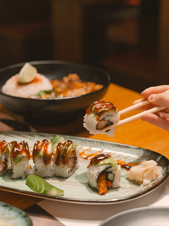 Η εμπειρία ξεκίνησε με sushi, και συγκεκριμένα με δύο από τις νέες δημιουργίες: Dragon Roll και Tiger Roll. Στο πρώτο, οι γαρίδες σε φρυγανιά panko συνδυάζονταν ιδανικά με αγγούρι, αβοκάντο, μαγιονέζα kimchee και γλυκιά σάλτσα teriyaki, ενώ οι ανάμεικτοι σπόροι σουσαμιού και η tartar sauce ολοκλήρωναν το πιάτο με αρωματική ένταση και τραγανή φρεσκάδα. Το Tiger Roll, από την άλλη, με παναρισμένες γαρίδες, αβοκάντο, κόκκινο tobiko, πικάντικη μαγιονέζα και την απαλή γλυκύτητα της teriyaki sauce – ένας εκρηκτικός συνδυασμός που ξεχώρισε.
