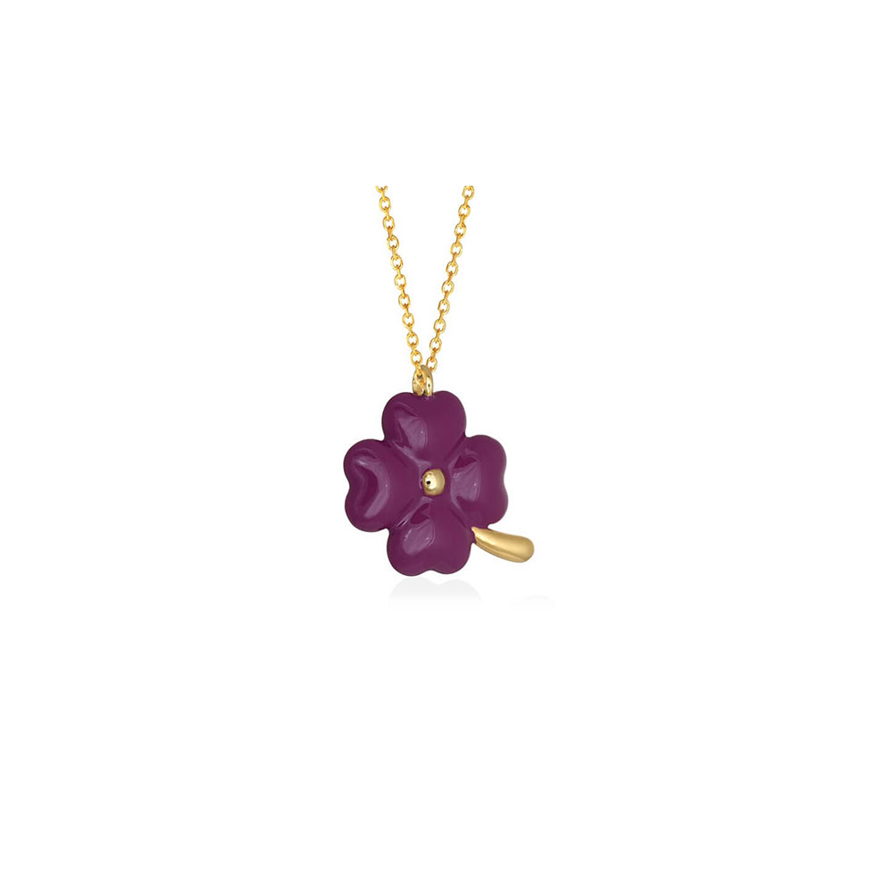 Επίχρυσο κολιέ τετράφυλλο τριφύλλι με μοβ σμάλτο
