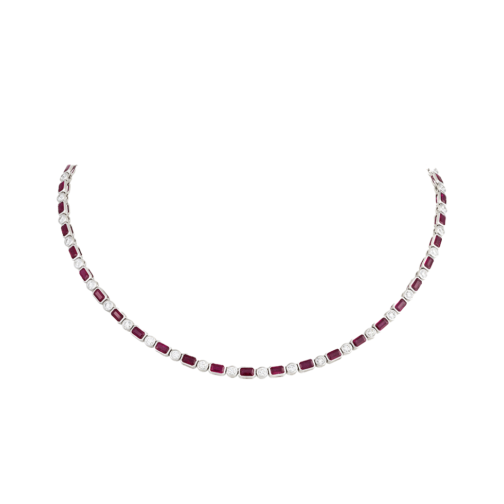 Κολιέ από λευκόχρυσο με ρουμπίνια και διαμάντια