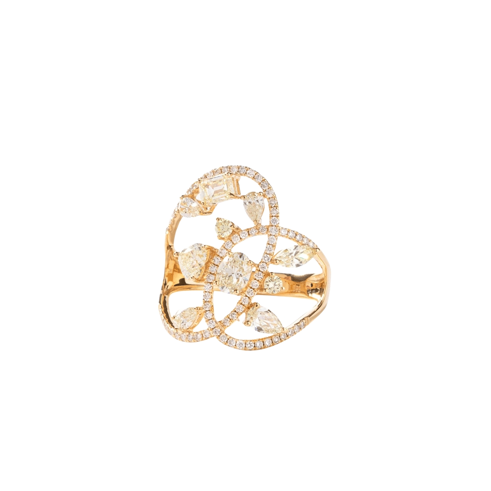 Μεγάλο χρυσό δαχτυλίδι με κίτρινα διαμάντια