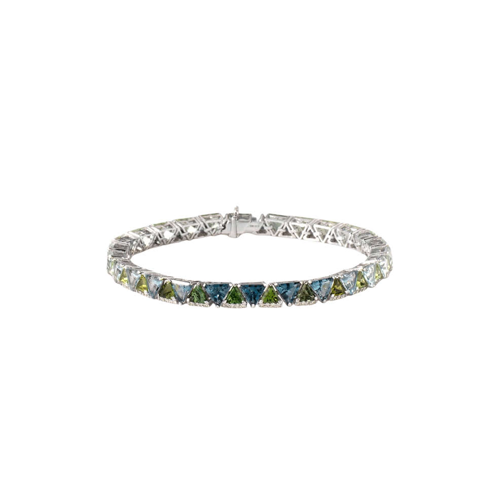 Τριγωνικό ριβιέρα χεριού με ακουαμαρίνα, μπλε τοπάζι και πράσινη τουρμαλίνη