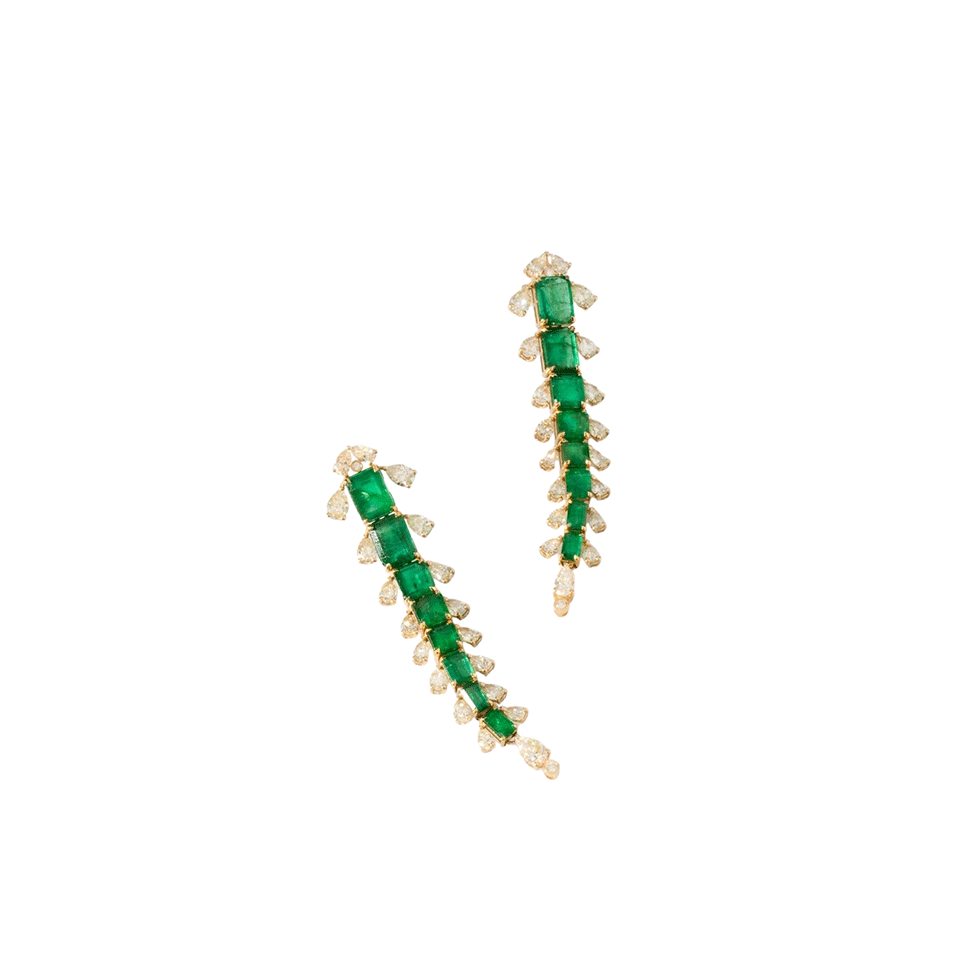 Μακριά εκθαμβωτικά σκουλαρίκια με σμαράγδια και κίτρινα διαμάντια