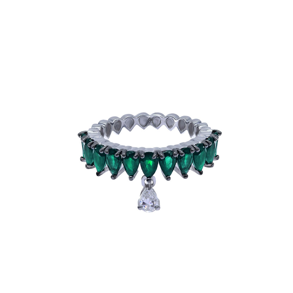 Δαχτυλίδι βέρα με σμαράγδια και κρεμαστό διαμάντι