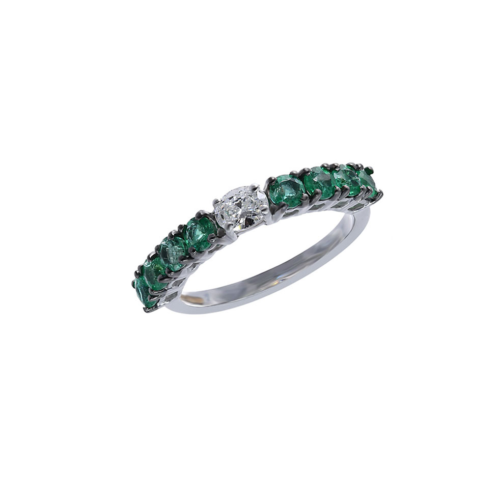 Δαχτυλίδι βέρα με σμαράγδια και οβάλ διαμάντι