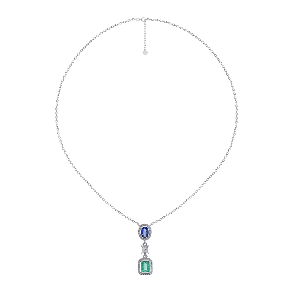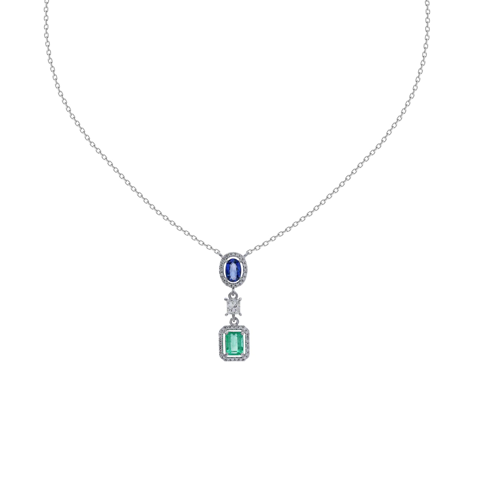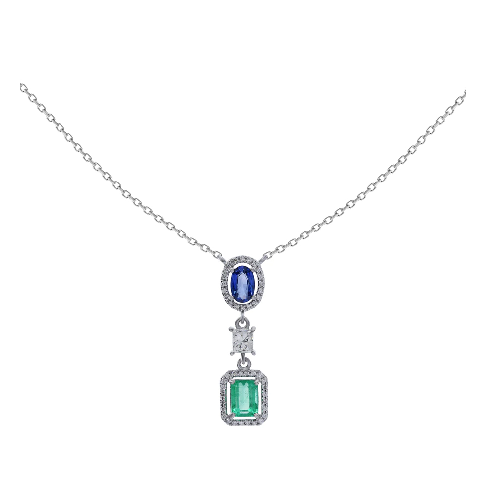 Κολιέ με διαμάντι σμαράγδι και ζαφείρι