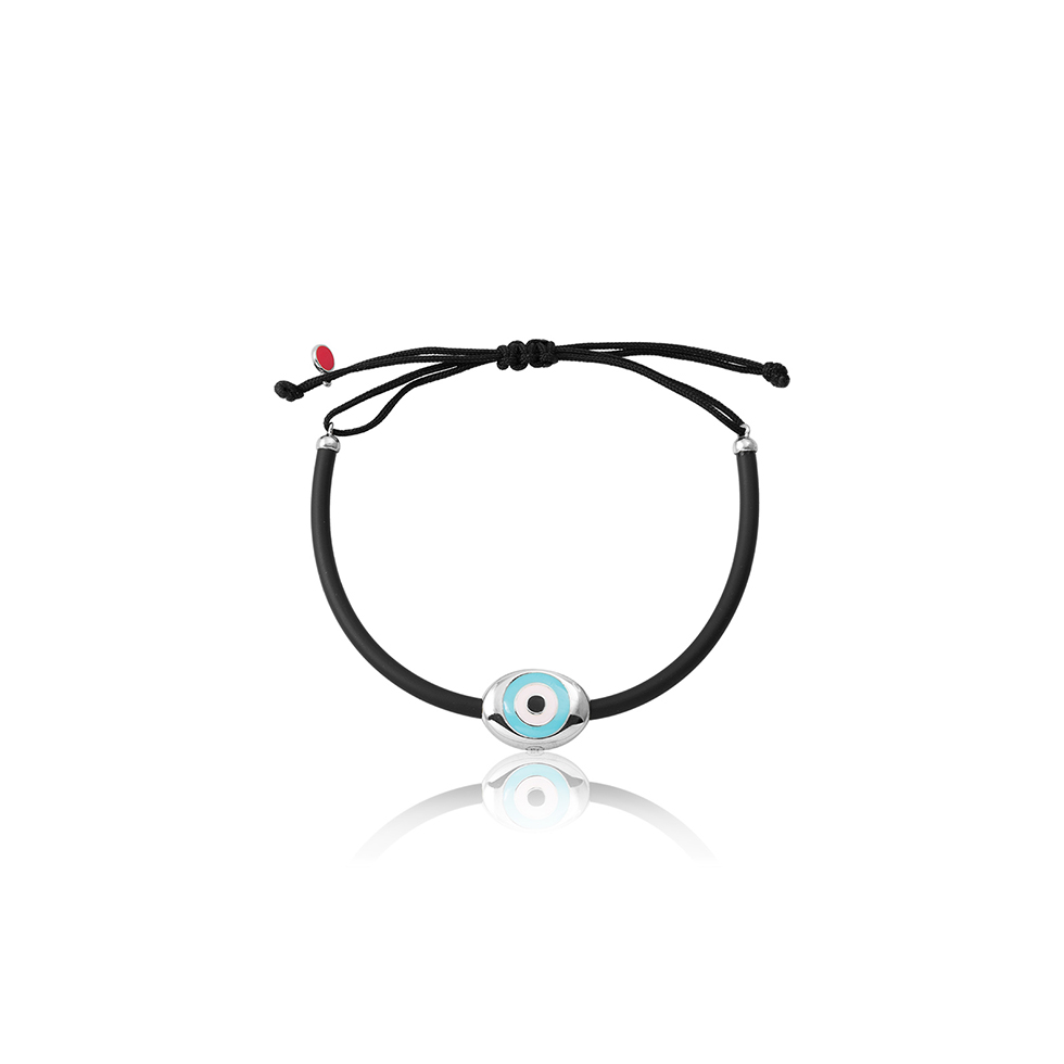 Μαύρο βραχιόλι με μάτι από σμάλτο και ασήμι