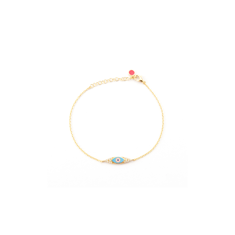 Επίχρυσο βραχιόλι με μάτι από γαλάζιο σμάλτο