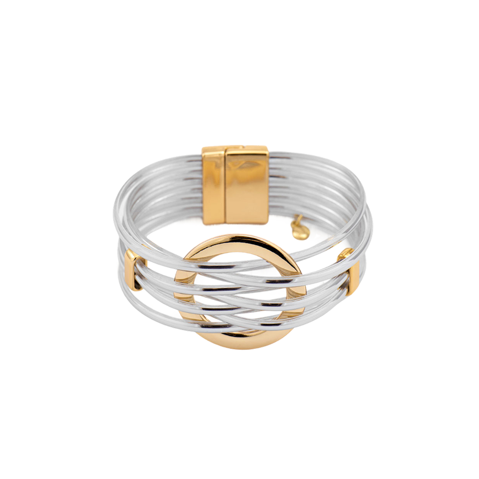 Πολύσειρο βραχιόλι με ασημί κορδόνια και μαγνητικό κούμπωμα, 24K επίχρυσος ορείχαλκος