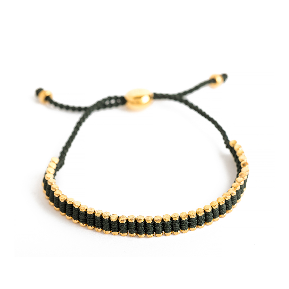 Βραχιόλι friendship από ασήμι 925 με επιχρύσωση 18 καρατίων και βαμβακερή κλωστή σε χακί απόχρωση. Φορέστε πολλά μαζί και δημιουργήστε ένα statement look!