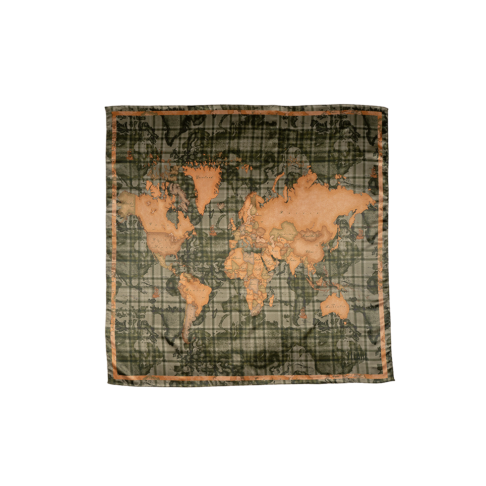 Λαδί εμπριμέ φουλάρι με σχέδιο χάρτη