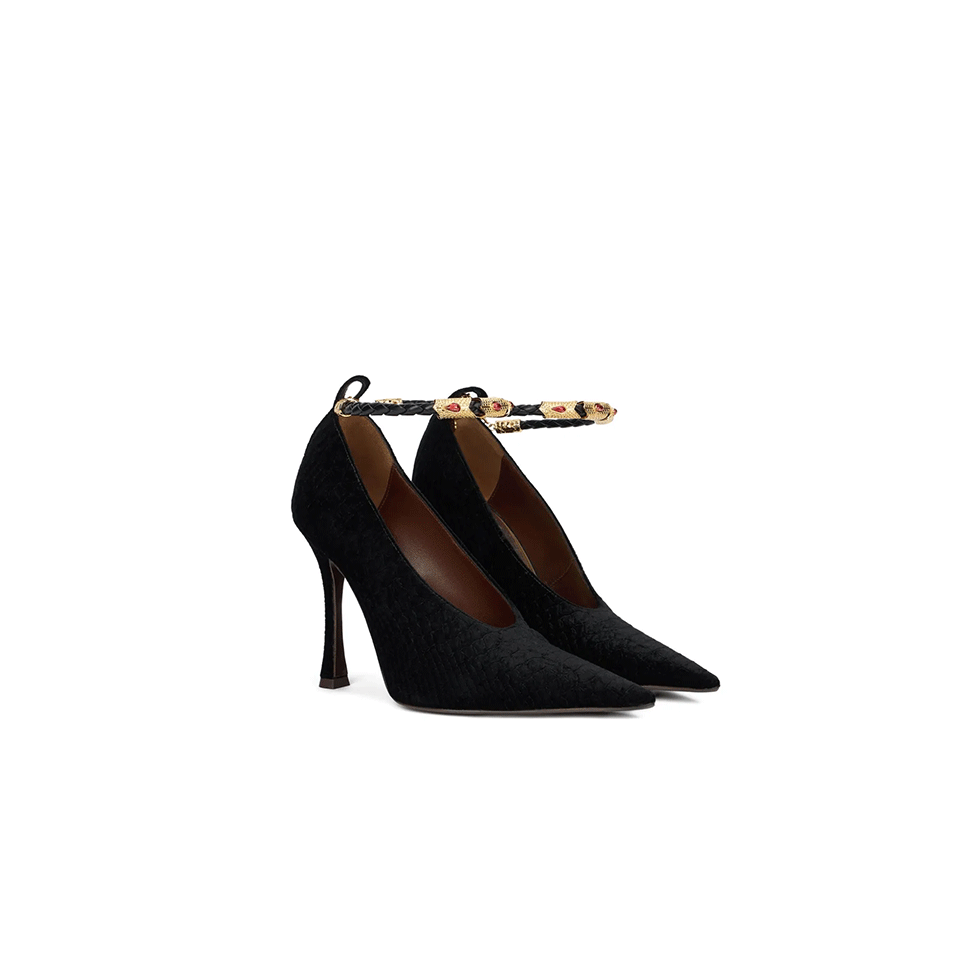 Μαύρες βελούδινες γόβες με πέτρες, Roberto Cavalli