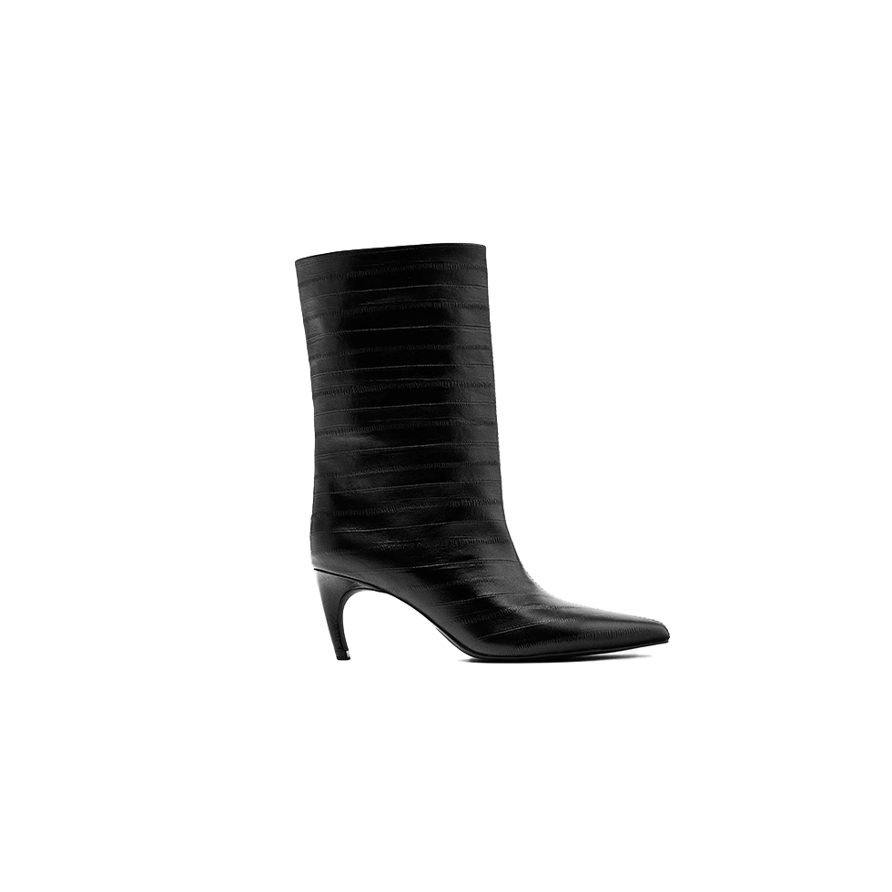 Μαύρα δερμάτινα μποτίνια με τακούνι και ανάγλυφο σχέδιο