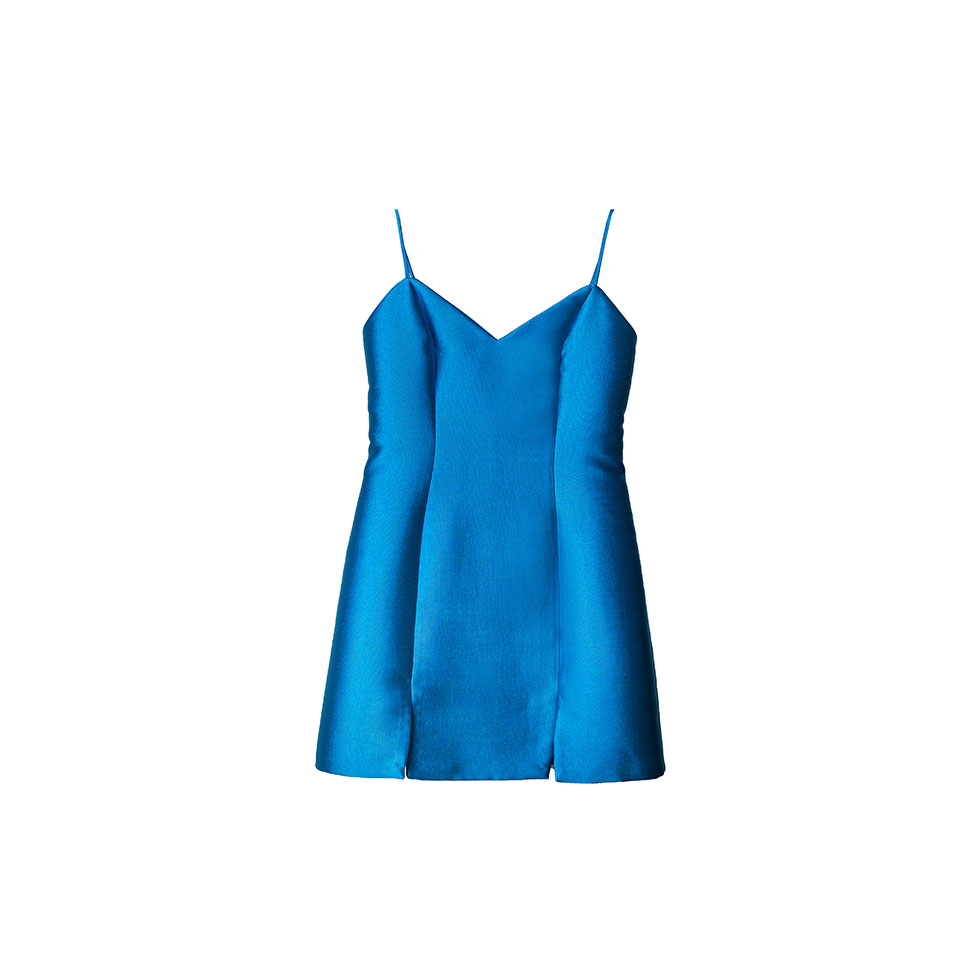 Μπλε mini φόρεμα με λεπτές τιράντες
