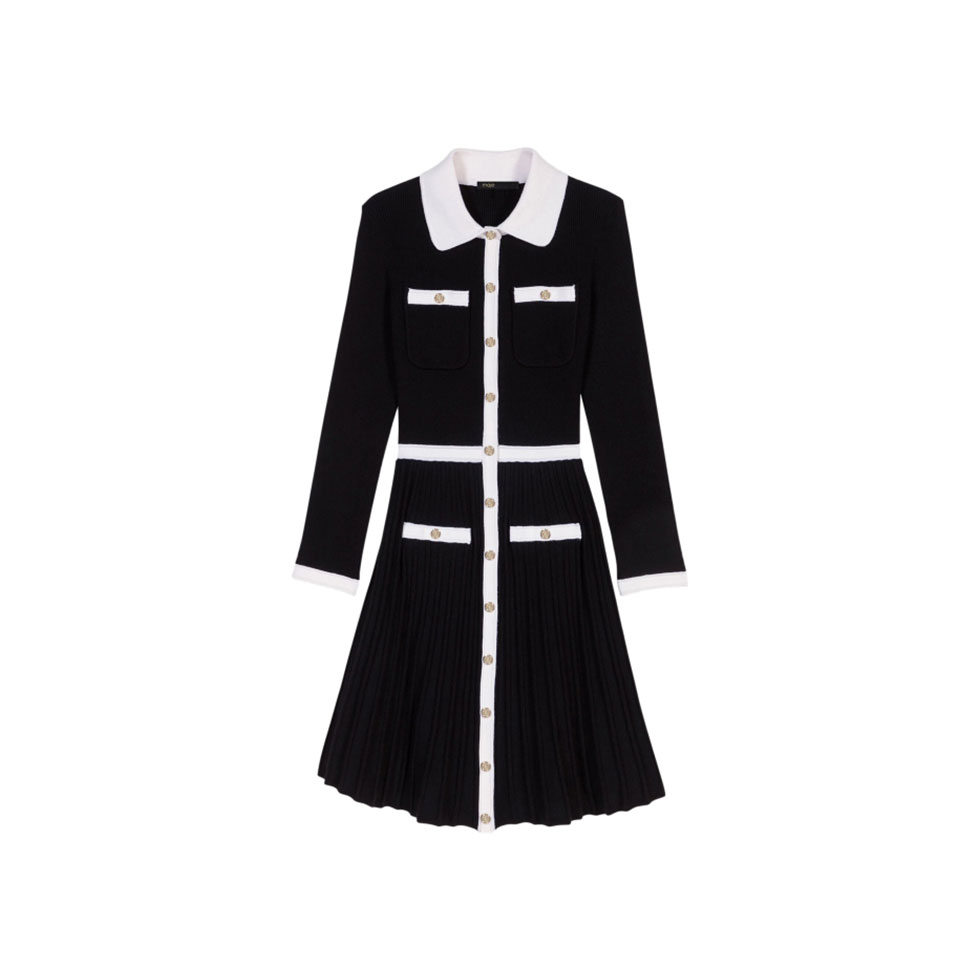Μαύρο πλεκτό φόρεμα με πλισέ φούστα