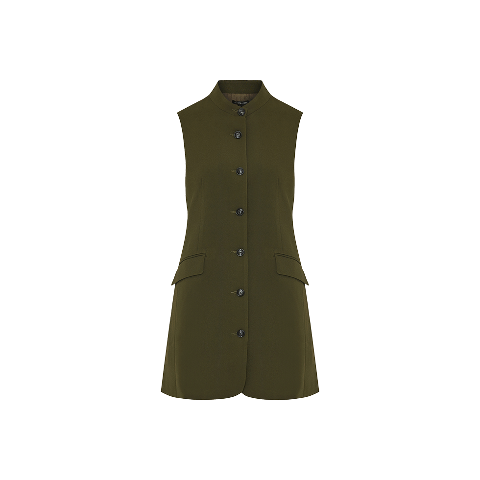 Λαδί αμάνικο φόρεμα με κουμπιά