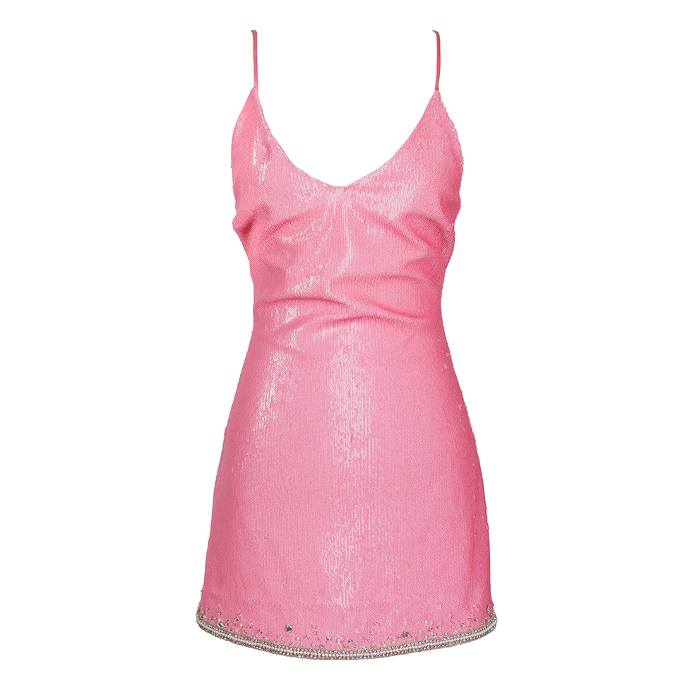 Ροζ μίνι φόρεμα κεντημένο στο χέρι με κρύσταλλα Swarovski. Μία μοναδική δημιουργία Celia Kritharioti, ιδανική για τα επίσημα καλέσματα της σεζόν.