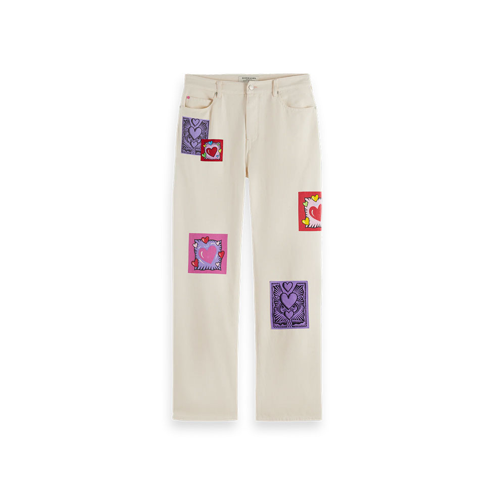 Εκρού jean με patchwork Scotch & Soda x Burton Morris