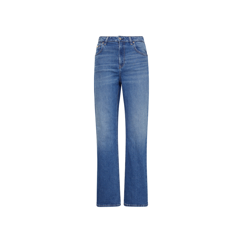 Μπλε ψηλόμεσο denim παντελόνι σε ίσια γραμμή