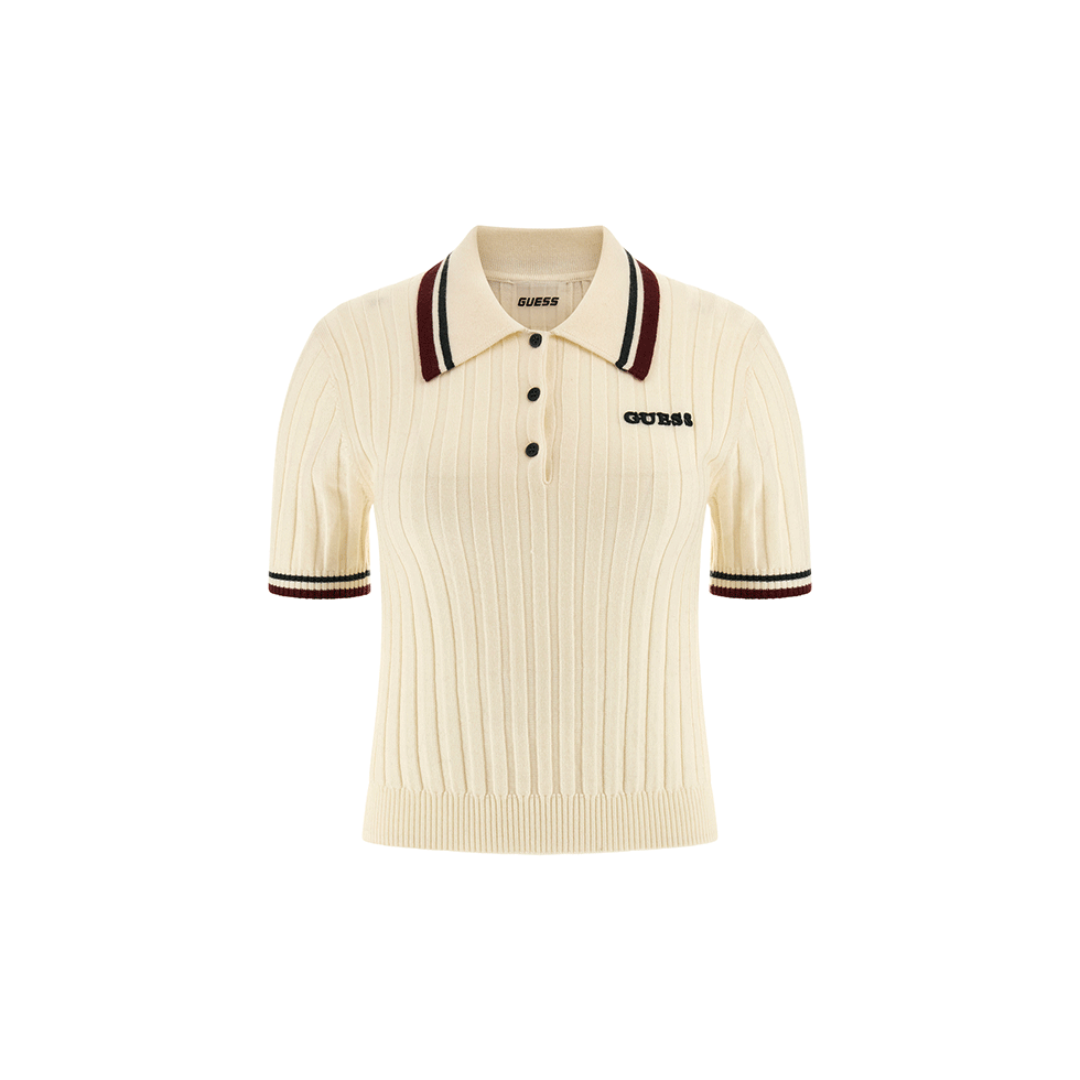 Λευκή μπλούζα πόλο από σύμμεικτο μαλλί