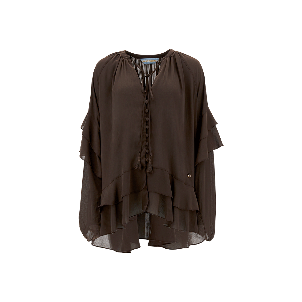 Καφέ μπλούζα με λεπτομέρειες βολάν