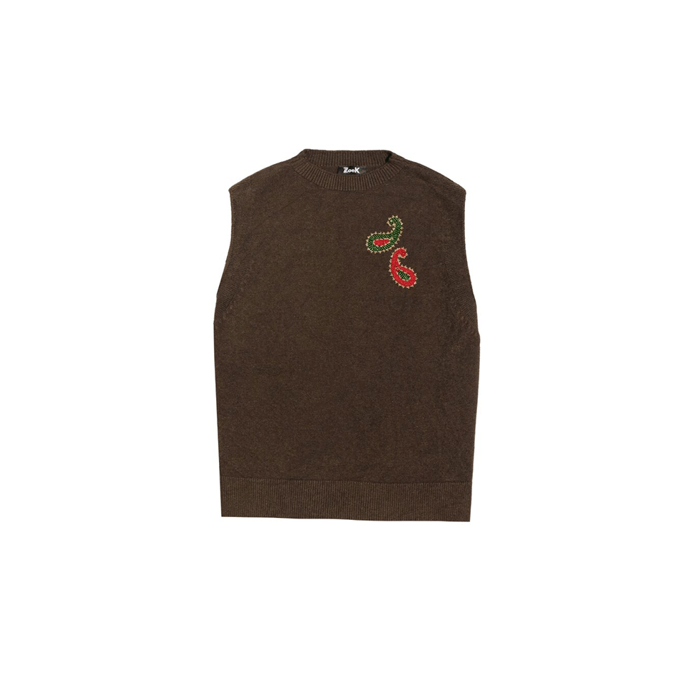 Καφέ αμάνικο μάλλινο top με λεπτομέρεια