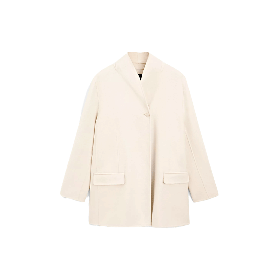 Εκρού παλτό με ψηλό γιακά και μαλλί