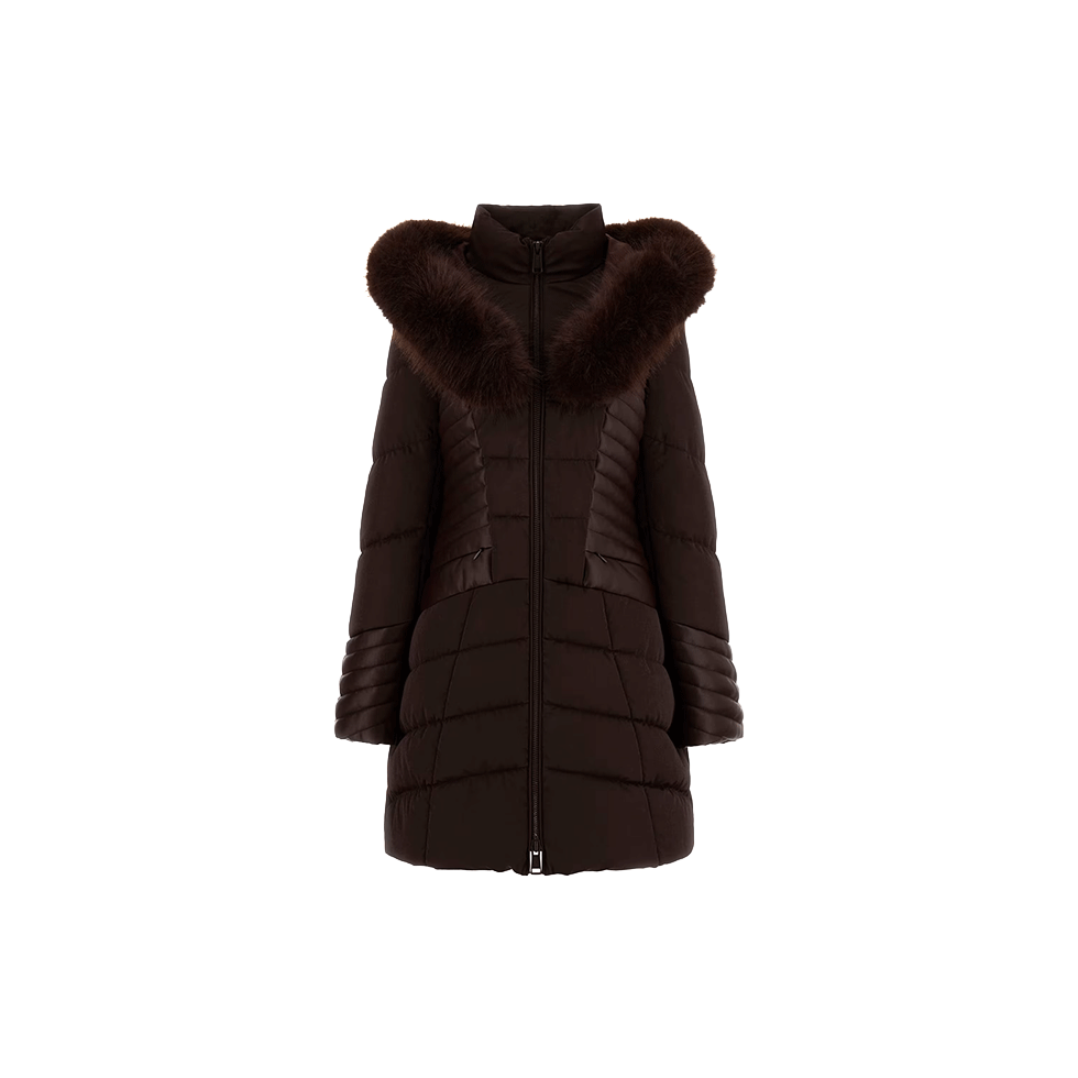Σκούρο καφέ μπουφάν με συνθετική γούνα στην κουκούλα
