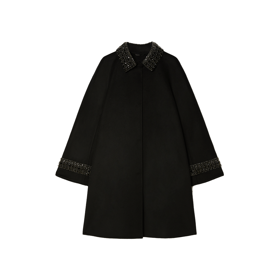 Μαύρο παλτό με διακοσμημένο γιακά και μανσέτες