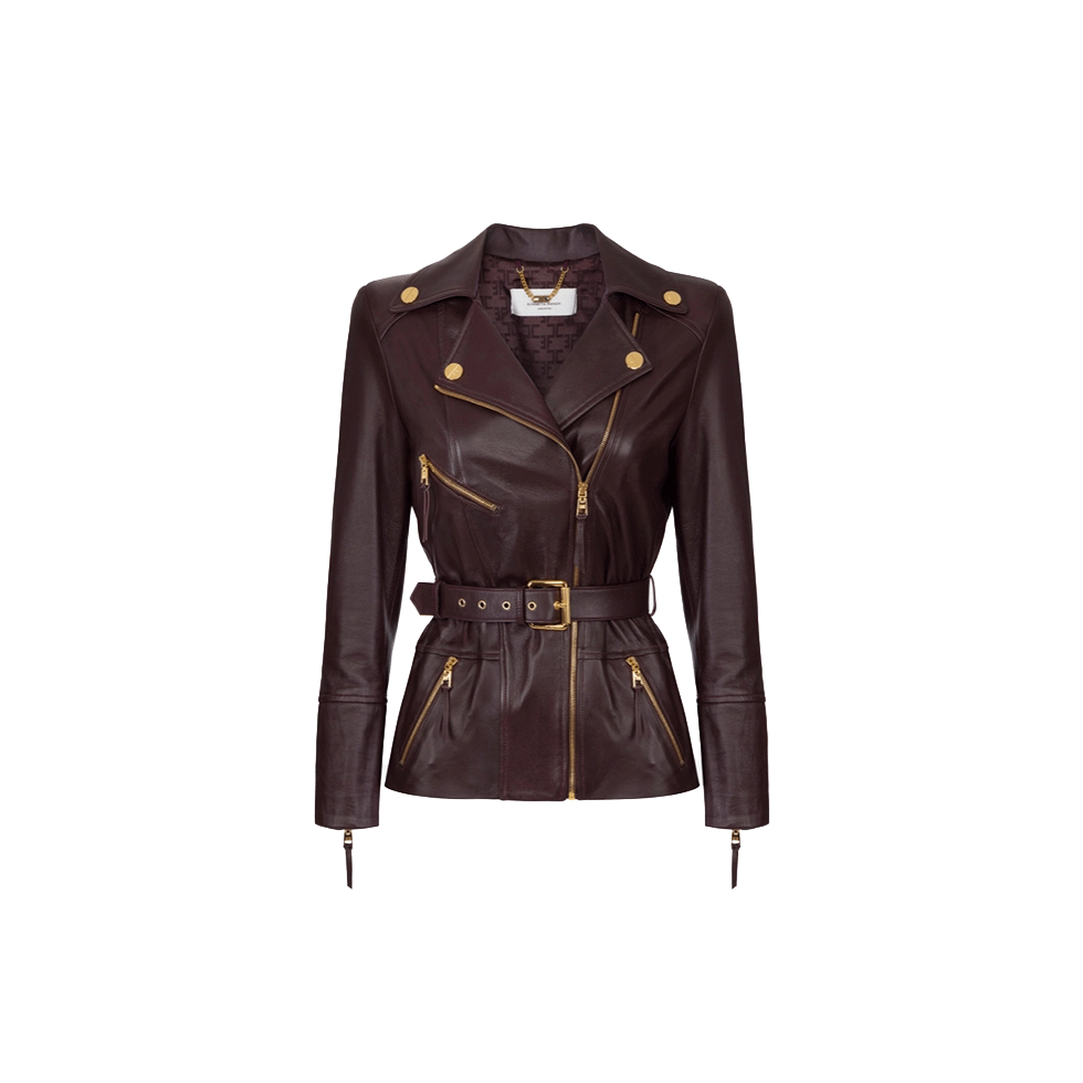 Μπορντό δερμάτινο biker jacket, Elisabetta Franchi