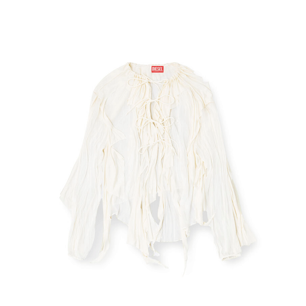 Λευκό πουκάμισο με βολάν και τσαλακωμένο ύφασμα