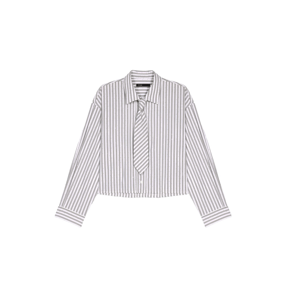 Γκρι ριγέ πουκάμισο με ενσωματωμένη γραβάτα