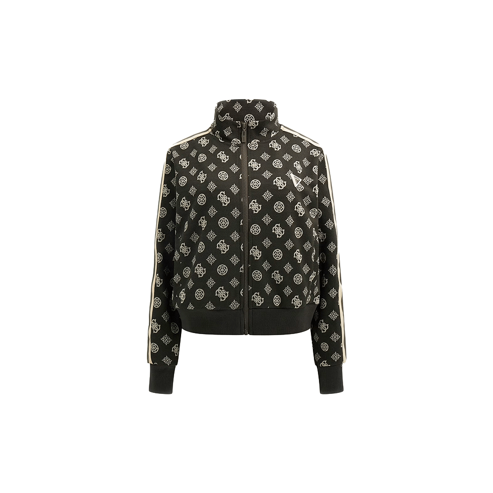 Μαύρο φούτερ με φερμουάρ και λογότυπο all-over