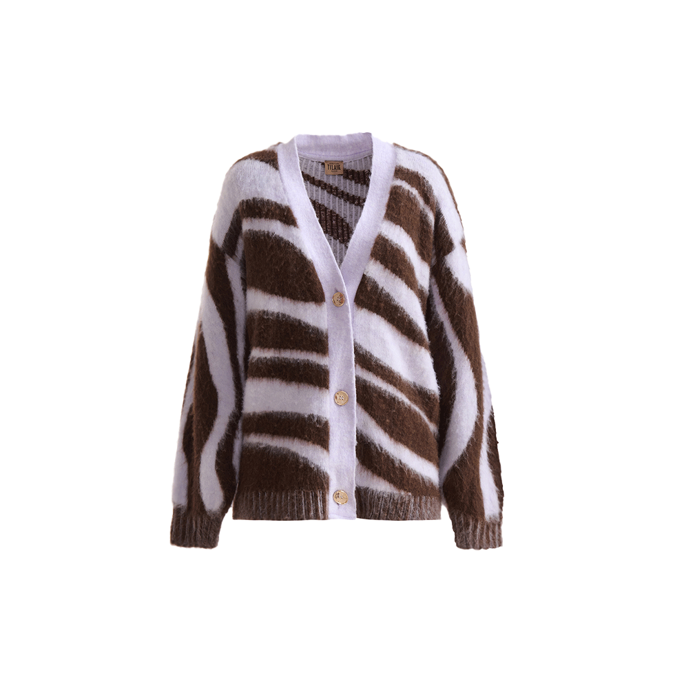 Μωβ εμπριμέ ζακέτα με κουμπιά