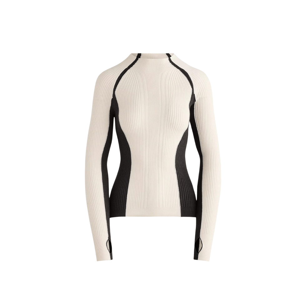 Μπεζ πλεκτή rib μπλούζα με μαύρη αντίθεση