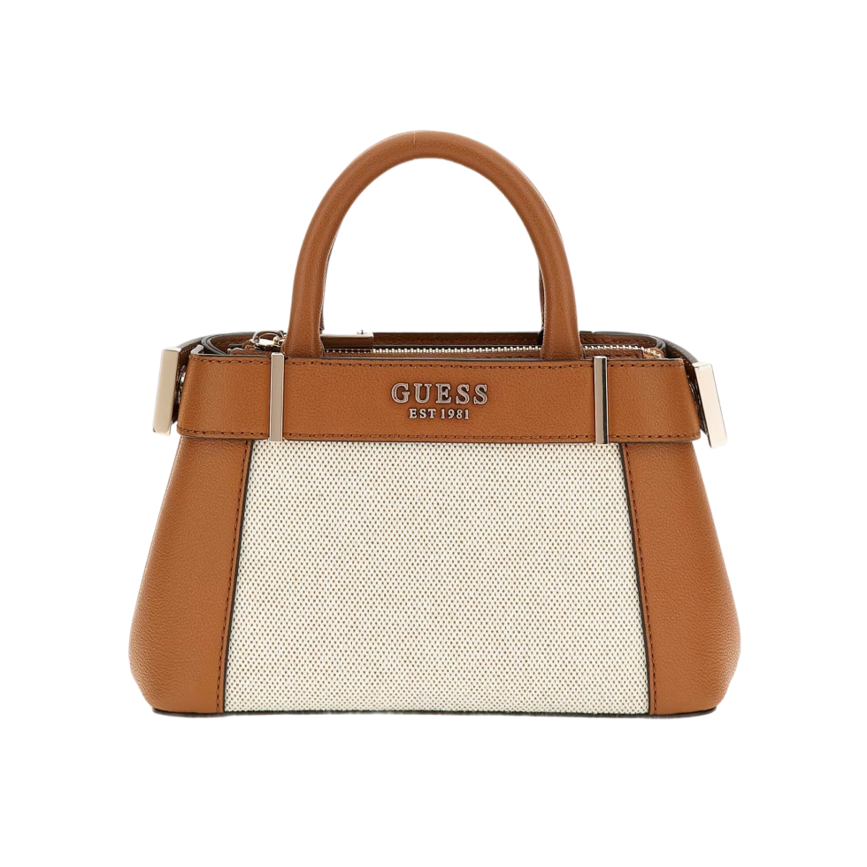 Καφέ τσάντα δερμάτινη με ψάθινες λεπτομέρειες Anadela