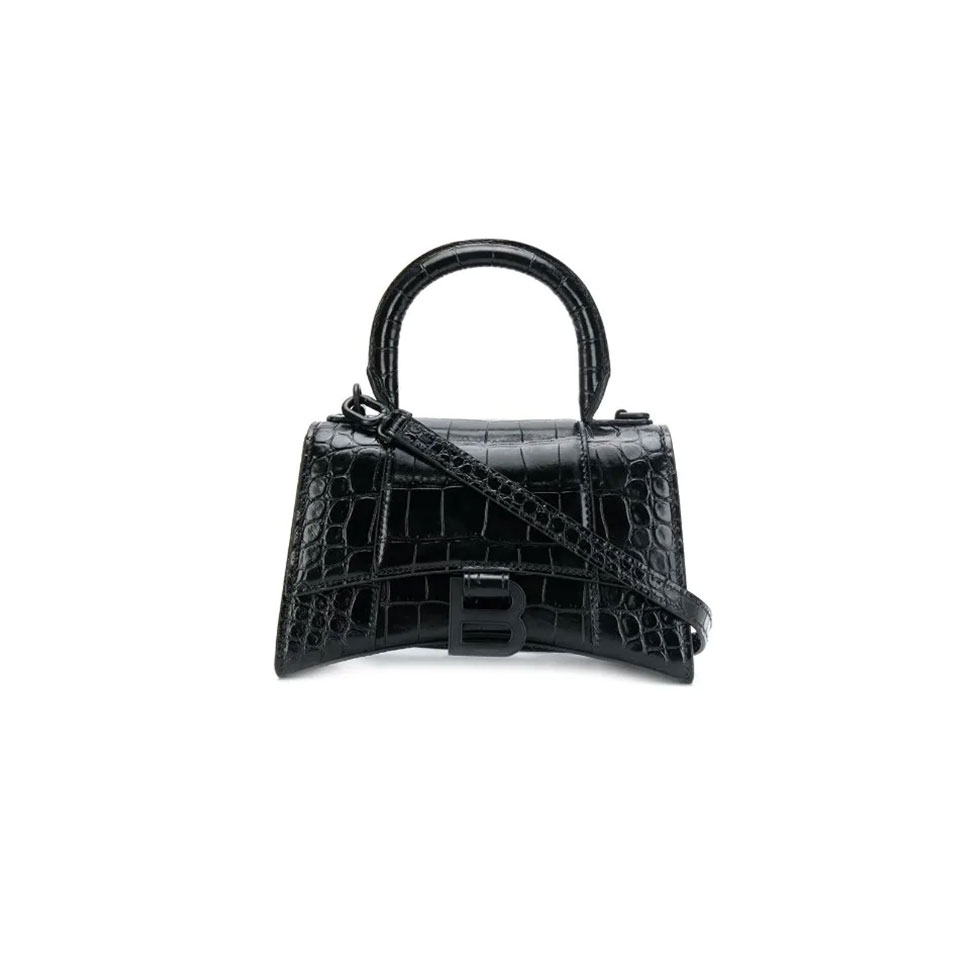 Μαύρη δερμάτινη τσάντα Hourglass Top Handle XS, Balenciaga