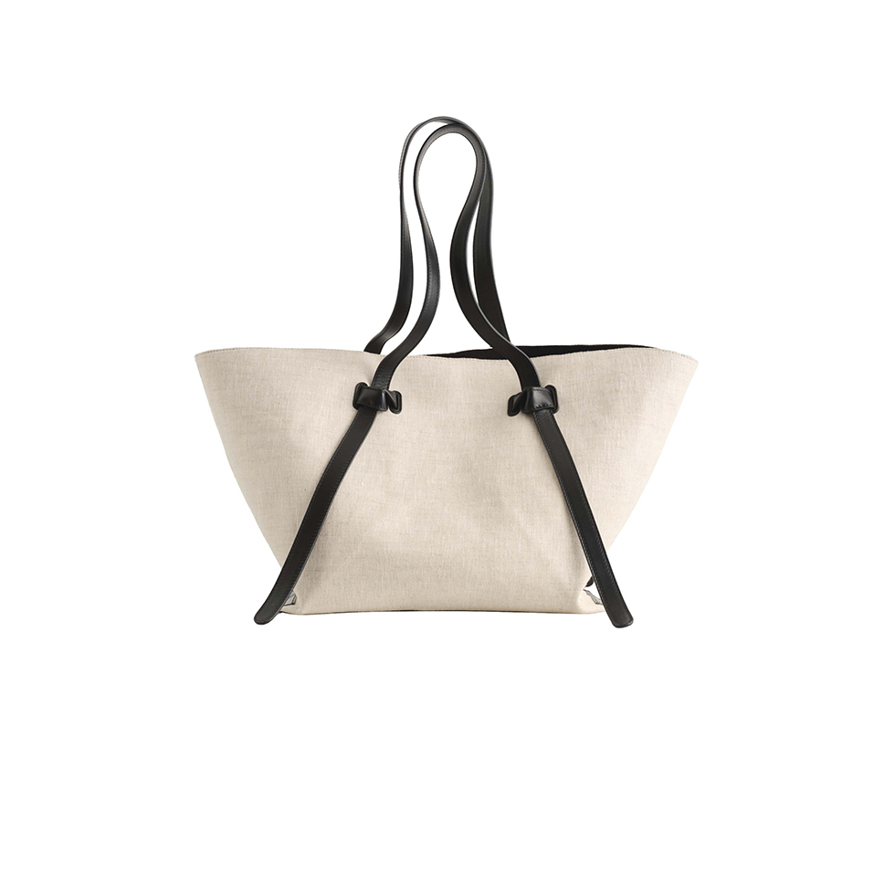 Μπεζ τσάντα ώμου με μαύρα χερούλια