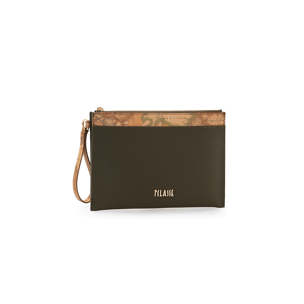 Λαδί clutch τσάντα με λεπτομέρεια χάρτη
